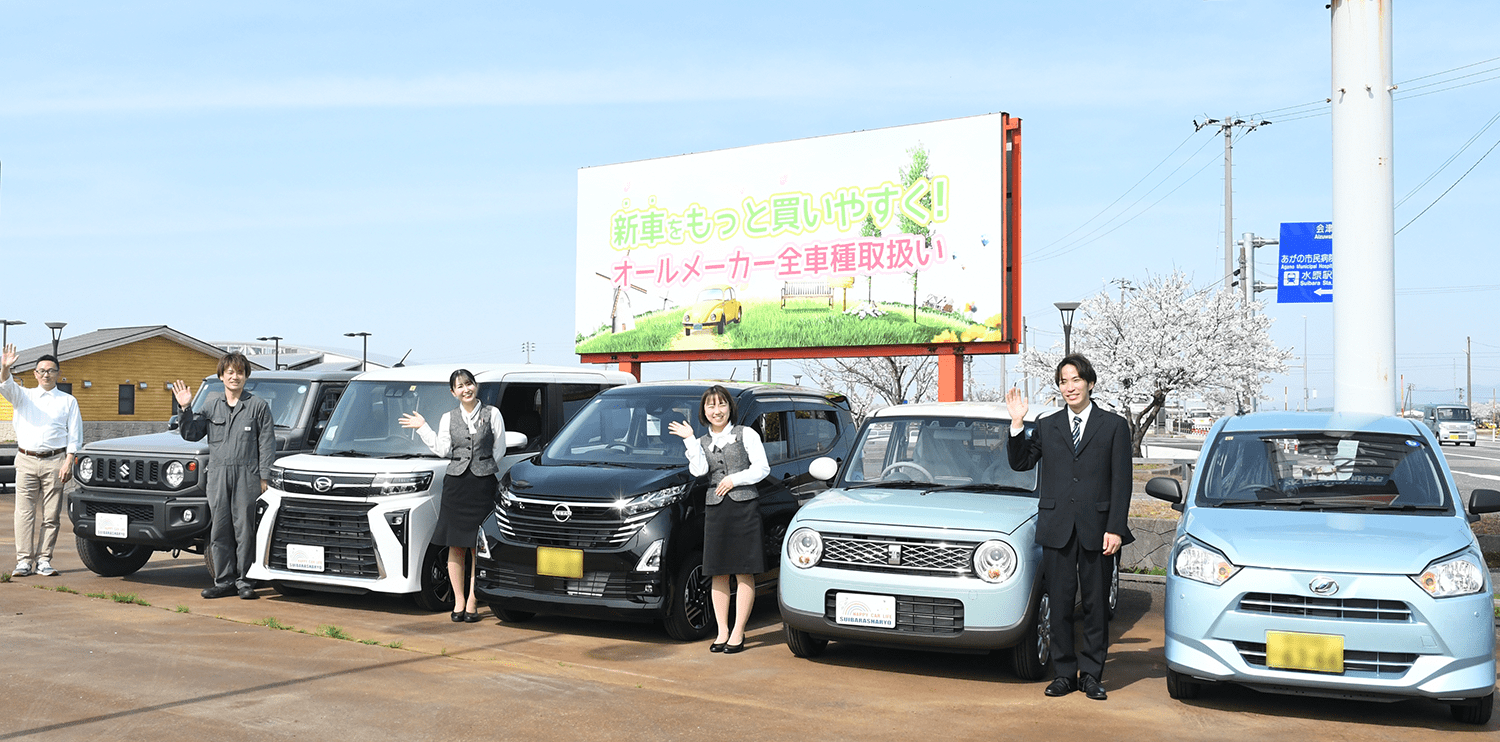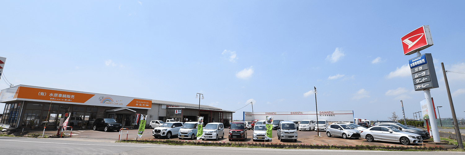 水原車輌販売は、昭和57年に新潟市・阿賀野市で創業した自動車販売会社です。新潟市・阿賀野市のお客様へ徹底した「お客様中心主義」をモットーに、また行きたい!と思えるような真心こめたサービスを目指しております。